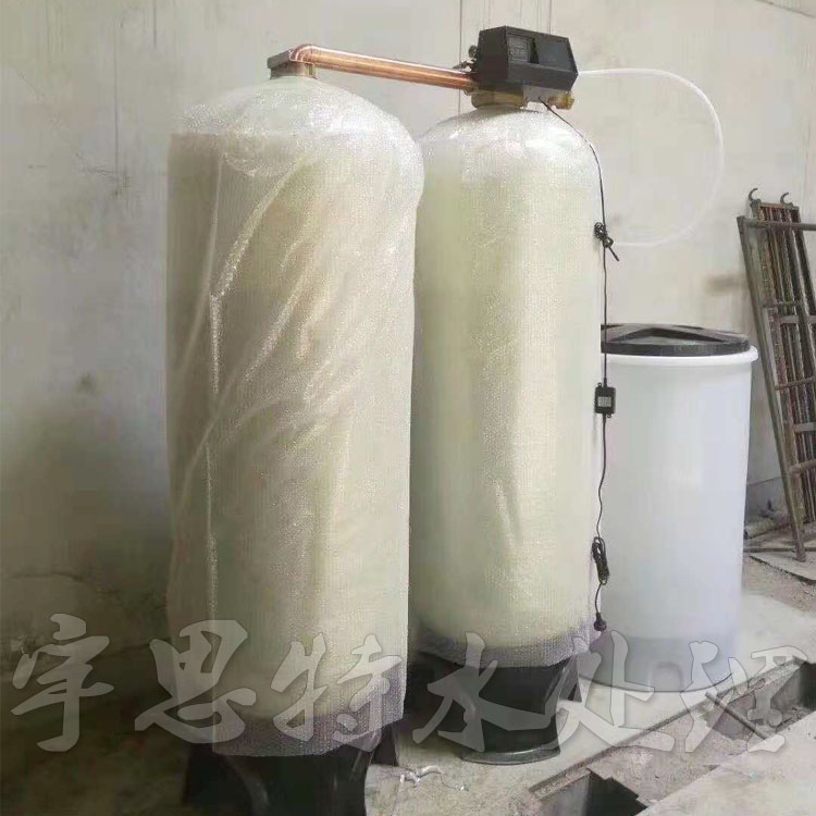 運行原理是,硬水經過控制閥進入第一個樹脂罐,經樹脂層處理過的水通過布水器進入升降管,再通過控制閥經流量計流出。第二個樹脂罐進行再生準備工作。當第一個罐周期產水量到達設定的數值時,由多路閥流量計啟動信號,硬水由控制閥經連接管進入第二個樹脂罐,經樹脂層處理過的水通過布水器進入升降管。再由連接回到控制閥經過流量計流出。這時第一個樹脂罐脫離水流路線,準備再生。