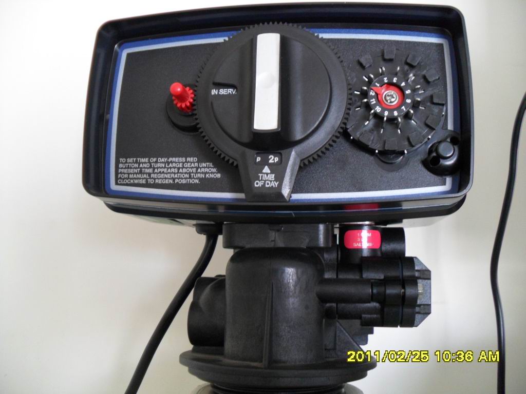 再生控制器在出廠時已將再生時間固定在2:30AM,即當24小時齒輪2:30AM與時間箭頭對齊時,就開始再生。當然也可根據需要,使再生提前或推遲進行。另外,停電時24小時齒輪也停止走動,故停電后必須重新校正再生時間。